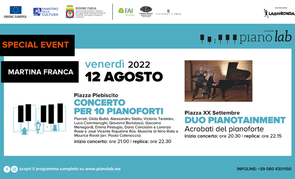 festival itinerante che celebra il pianoforte da protagonista vi da appuntamento al 12 e 13 agosto 2023 nel centro storico di Martina