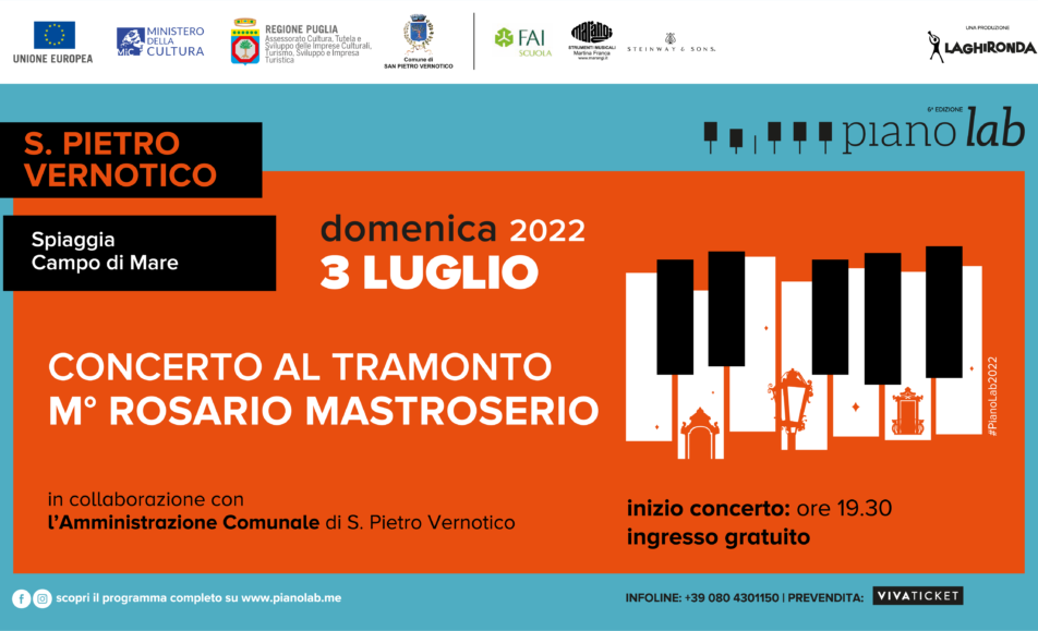 Sulla dorata Spiaggia di Campo di Mare, a pochi chilometri da S. Pietro Vernotico, torna un must della programmazione del festival che in Puglia celebra il pianoforte da protagonista: il “Concerto al Tramonto” sul mare.